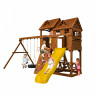 Детский городок изготовлен из северной древесины хвойных пород, обработанной безопасной декоративно-защитной пропиткой. Технология значительно увеличивает срок службы конструкций, повышает прочность древесины, защищает её от гниения и грибков. Обработка придаёт дереву приятный оттенок, проявляет и подчёркивает его текстуру. Используемая пропитка не содержит токсичных компонентов, экологична и абсолютно безопасна для ребёнка. Состав прошёл санитарно-эпидемиологическую экспертизу в Центре гигиены и эпидемиологии в г. Копейску.