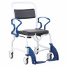 Стул Даллас оснащен колесами. На задней паре предусмотрен тормоз, который не только останавливает устройство, но и фиксирует его в заданном положении. Есть откидные поручни с функцией фиксации для максимально комфортного использования. Сиденье и закрывающая его крышка также полиуретановые. Предусмотрены подножные опоры, которые фиксируются по высоте и легко снимаются. В комплектацию входит легко моющееся туалетное судно.