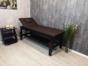 Основная особенность массажного стола с электроприводом — его улучшенный функционал. Данная модель состоит из 9 секций: подголовник, спинка, подставка для ног, и шесть подлокотников. Для регулировки положения стола присутствует электрический привод, управляемый с помощью ручной педали. Конструкторы предусмотрели всё для комфорта пациента и специалиста.