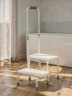 Ступени лесенки выполнены из высокопрочного пластика. Ребристая поверхность и дренажные отверстия ступеней предотвращают скольжение. Рама конструкции из хромированной стали защищена от коррозии. Лесенка устойчива и не скользит по полу благодаря резиновым наконечникам.